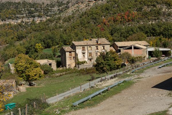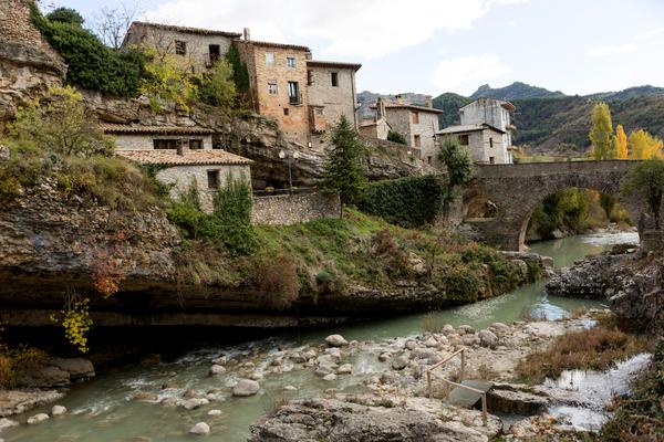 En el puente románico de tres ojos sobre el Isábena se centra el desarrollo de este enclave de angostas y estrechas calles empedradas que conectan la antigua iglesia de San Martín y la iglesia de San Lorenzo. Parte de su patrimonio comprende la ermita románica de La Vileta y el santuario de la Feixa.